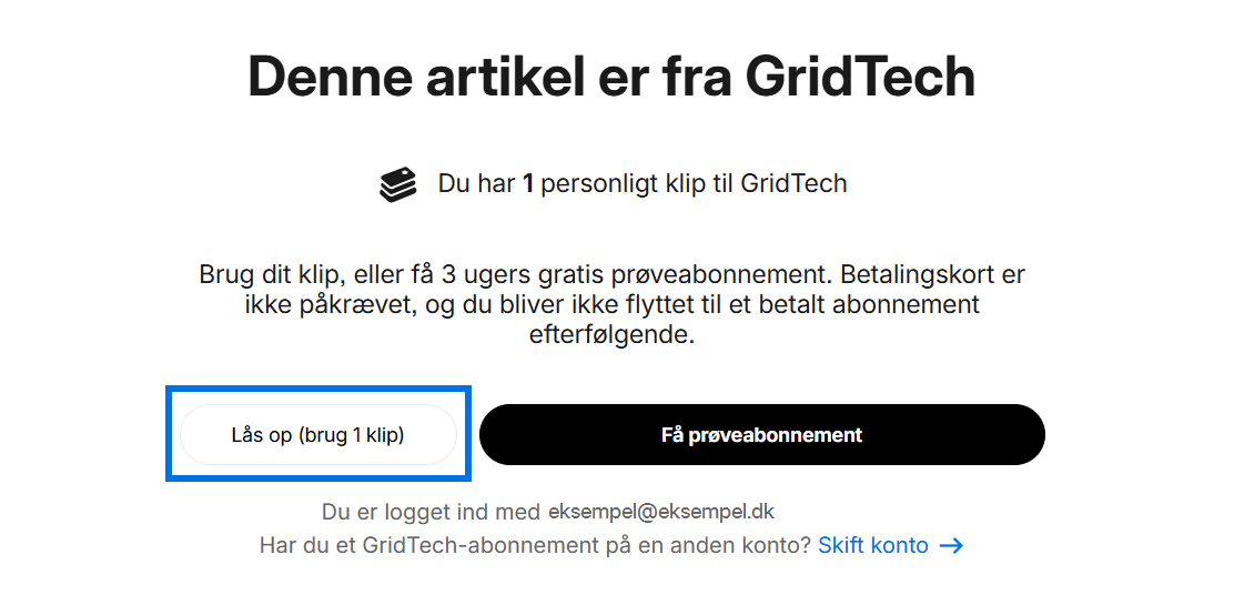 3. Artiklen er nu låst op og du har brugt dit klip.